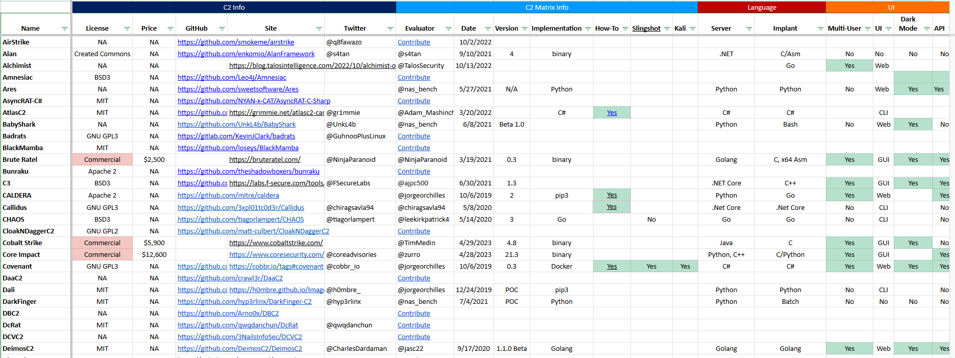 Common Command & Control Frameworks used by Professionals and Threat Actors